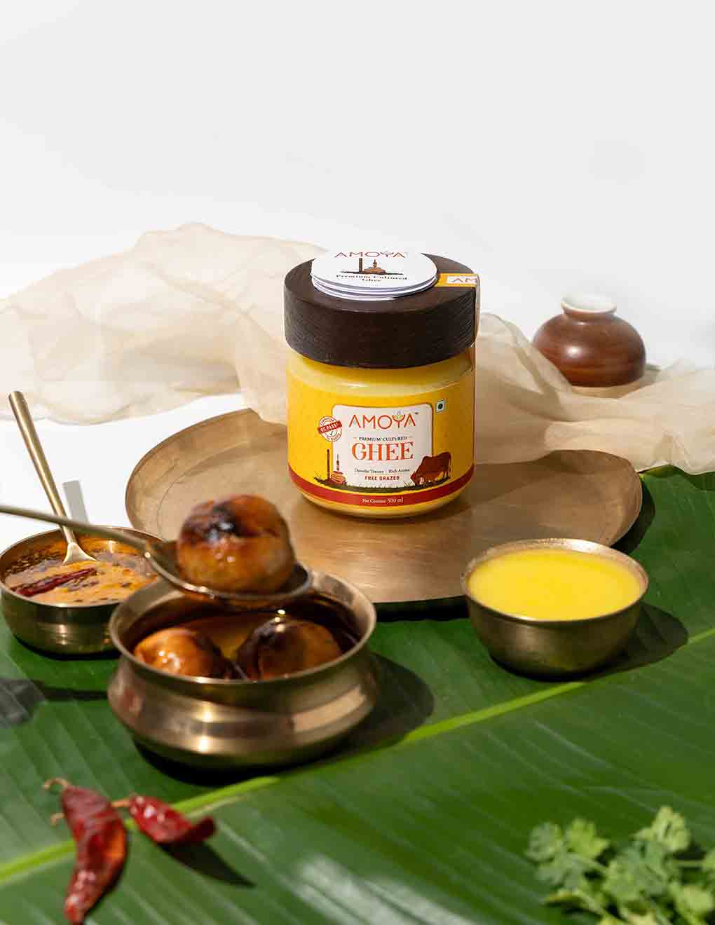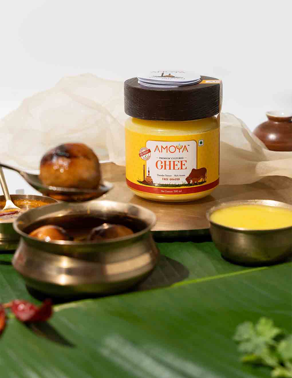 Amoya Premium Cultured Ghee is masterfully crafted using a traditional and artisan method of churning curd which enhances the flavour, nutritional value, and purity of the ghee.