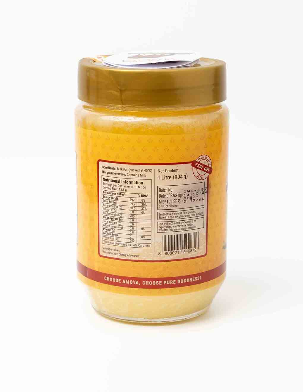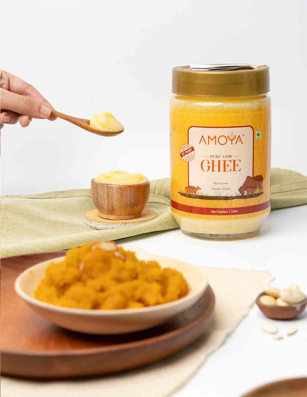 Amoya Pure Cow Ghee is finely crafted out of pure cow milk which is churned using sophisticated methods resulting in clarified ghee with velvety texture and oozing with rich indulgent flavors. An essential addition in your culinary haven.